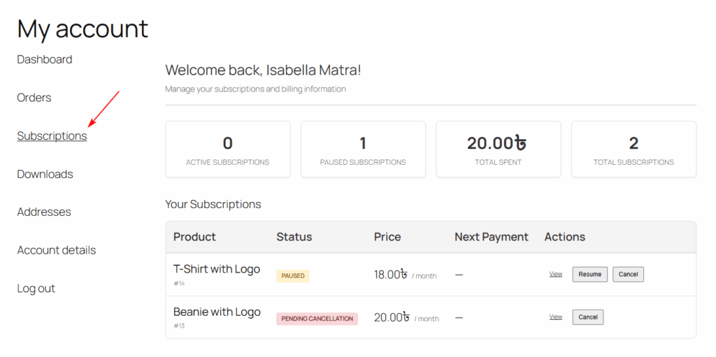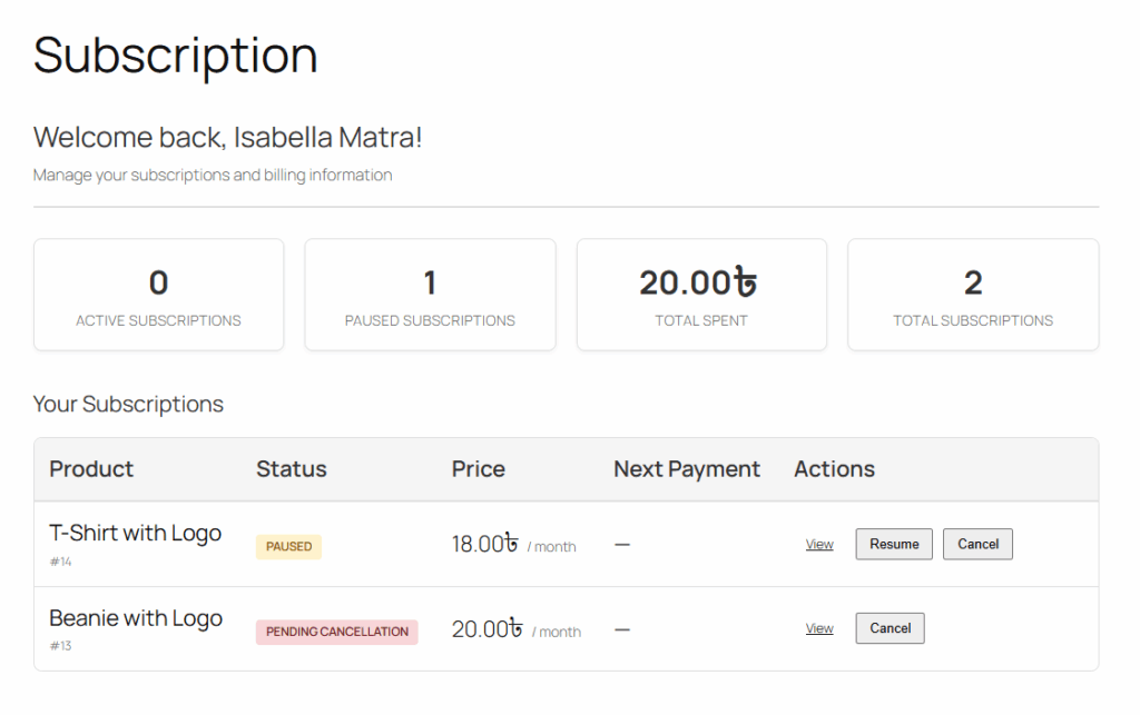 The Recurio Customer Portal is a self-service interface integrated directly into your WooCommerce store.